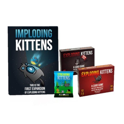 Deal 1 defuse card to each player so that everyone has a hand of 5 cards total. Insert the imploding kitten and enough exploding kittens back into the deck so that the total number of kittens imploding and exploding is one fewer than the number of people playing. During setup replace one exploding kitten card with an imploding kitten card. The expansion extends the player count to 2 7.